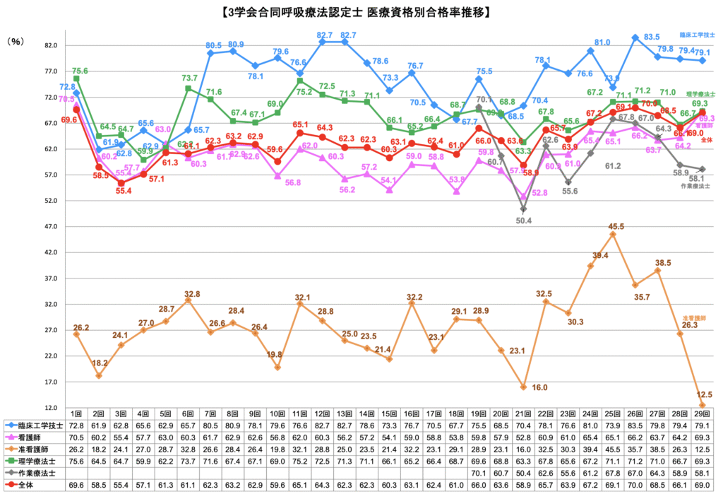 呼吸療法認定士の合格率60%台前半は、看護師が受験する民間資格試験の中ではトップクラスで難しい